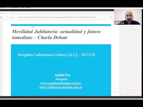 El 10/12/20 se desarrolló un evento en el cual Aníbal Paz expuso sobre la actualidad y el futuro inmediato de la movilidad jubilatoria. La organización del encuentro estuvo a cargo de Abogados Laboralistas Unidos [ALU].
